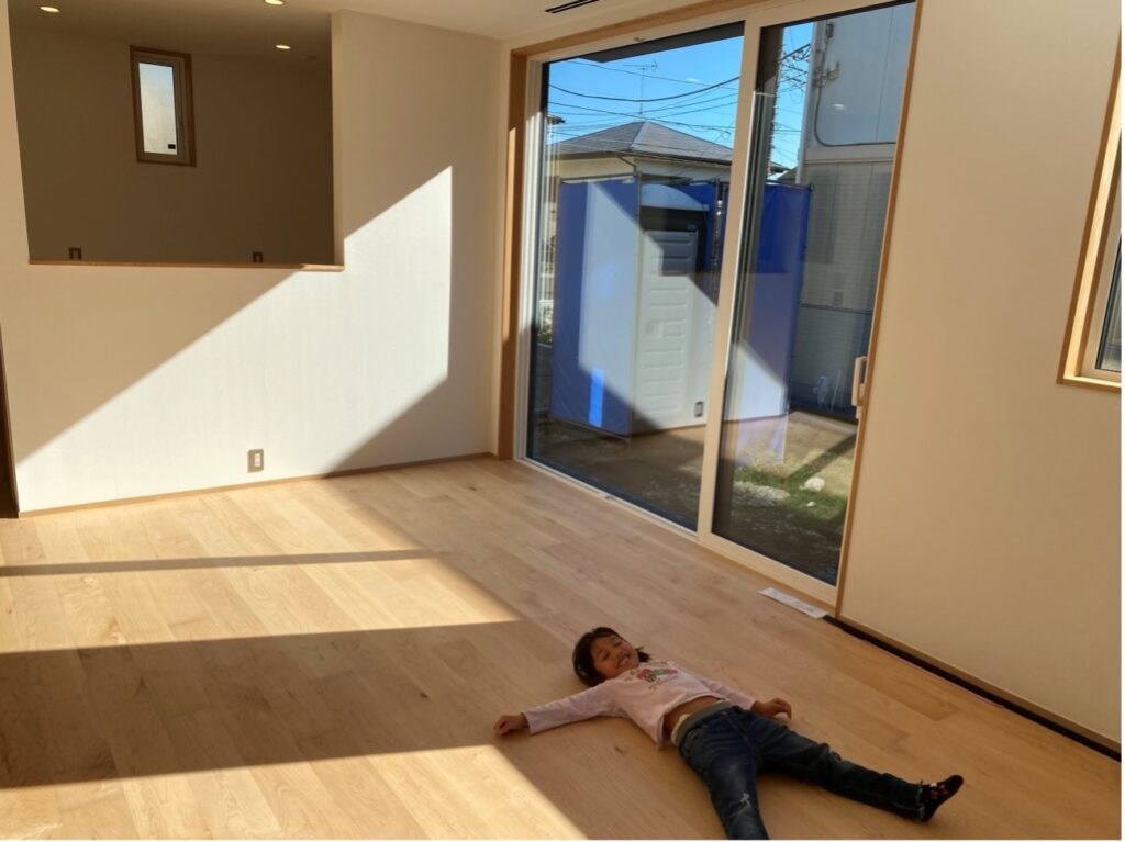 だから、造作でソファーも作りますし、スタンドライトもなるべく傘の位置を低くするものにしておきたい。家族全員が和やかにリビングで座りながら会話をすること。<Kizuki>が目指す「後世までつなぐ価値ある住まい」は、こうした家族の団らんが実現できることで、後世に自宅を繋いでいくことができるのです。