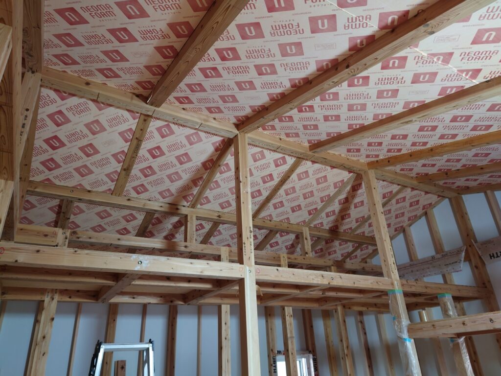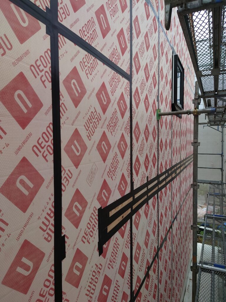 そして、ネオマフォーム45㎜を耐力面材MOISSに直貼りをしていきます。