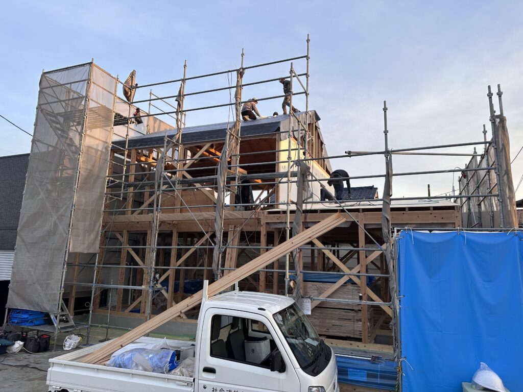 こんにちは、<Kizuki>の小泉です。先日藤沢市にて木造2階建ての住宅が無事上棟いたしました。