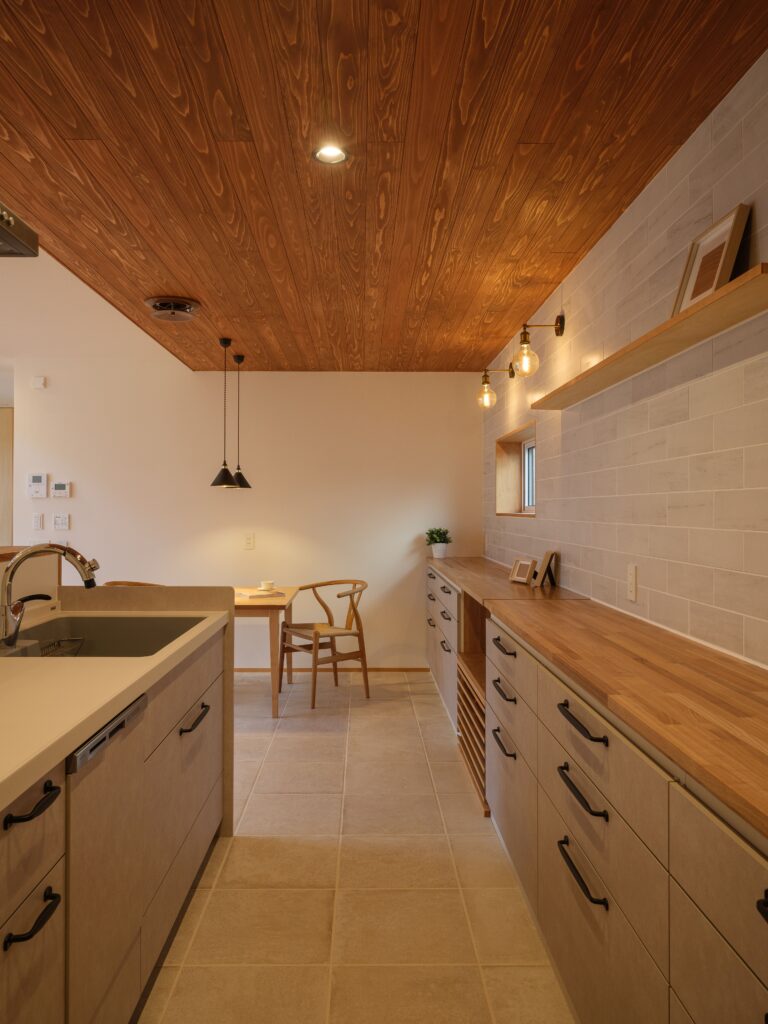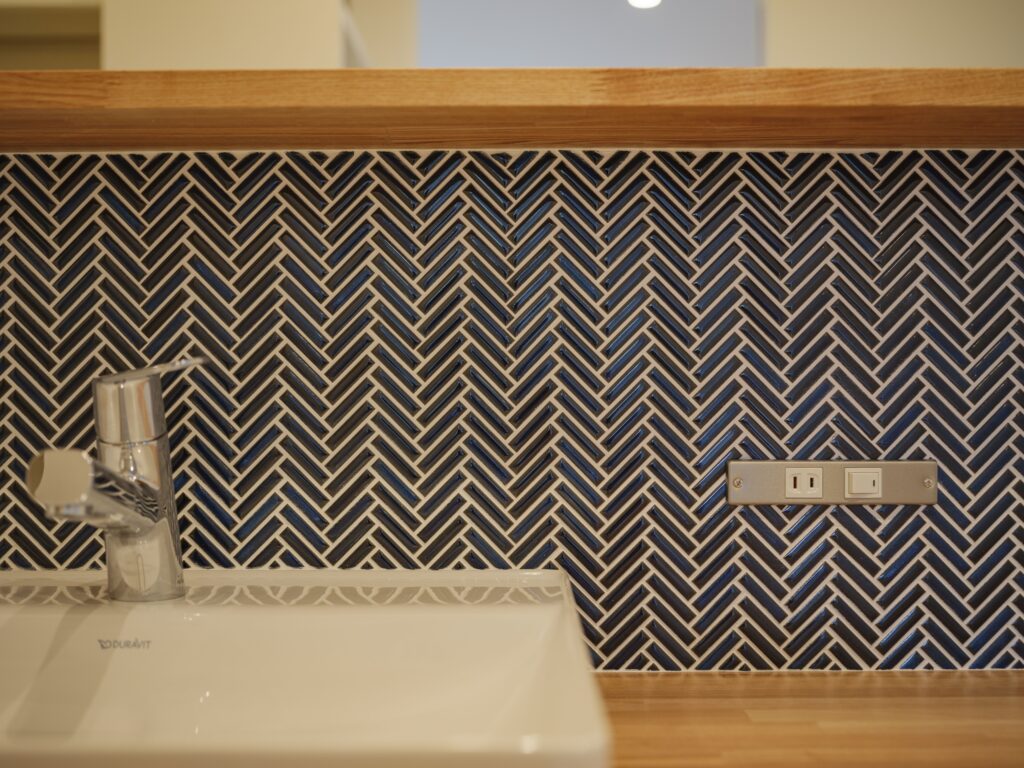 タイルを張ることが多い場所として、キッチンや洗面まわり、トイレや玄関土間の床などがあり、デザインだけでなく水や汚れに強くお掃除がしやすいなどの機能的な意味合いも兼ねています。
