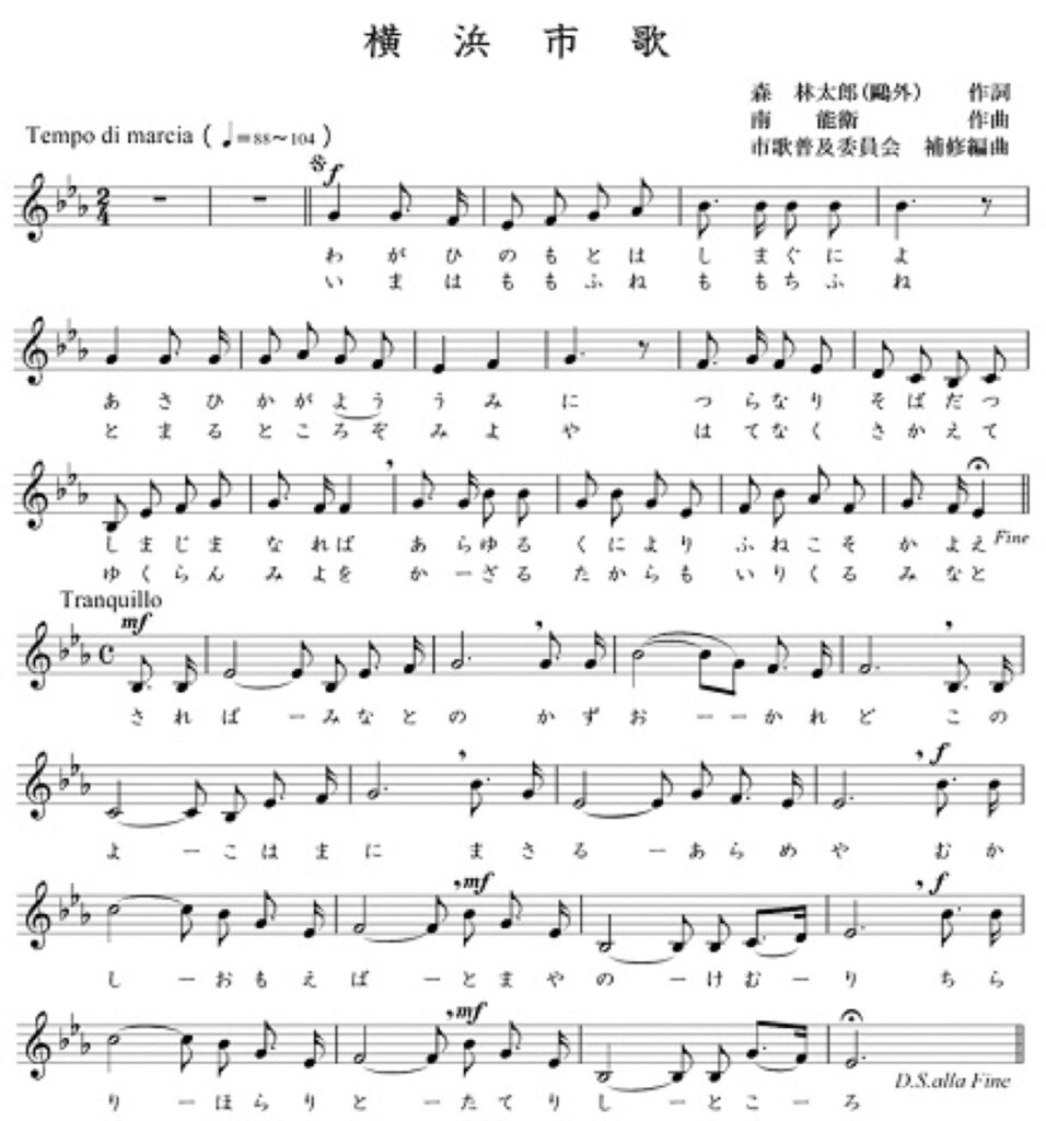 「横浜市歌」は横浜市生まれ、横浜市育ちの人々であれば、誰もが聴いたことがある歌です。市内の小学校や中学校などのイベントでは、日本の国歌である「君が代」よりも前に横浜市歌を斉唱しています。