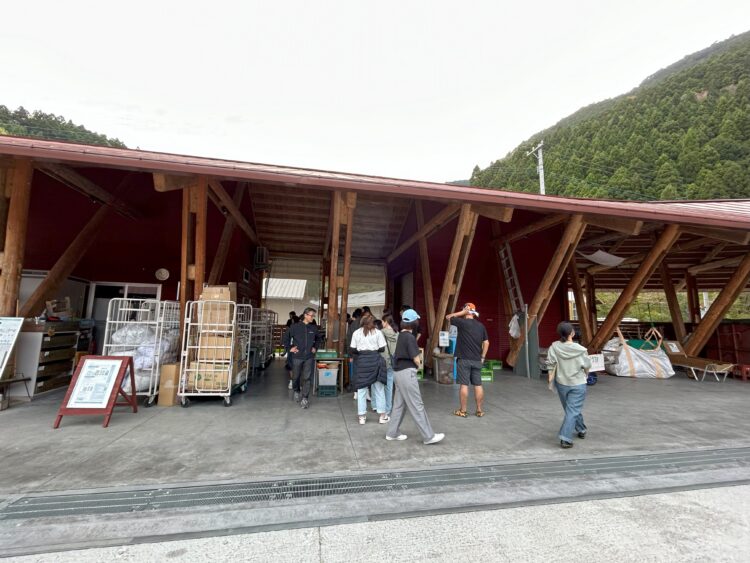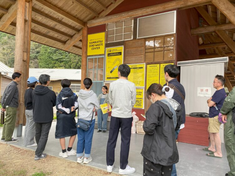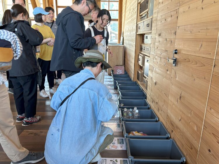 町のゴミステーションでは、上勝町が現状のごみ分別に至った経緯や歴史についてのお話を聞き、実際に町民の方々がごみを捨てに来られる場所を見学しました。