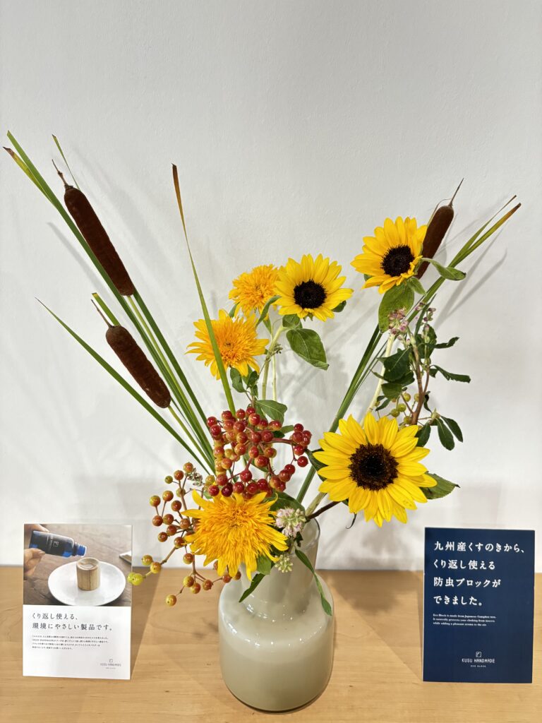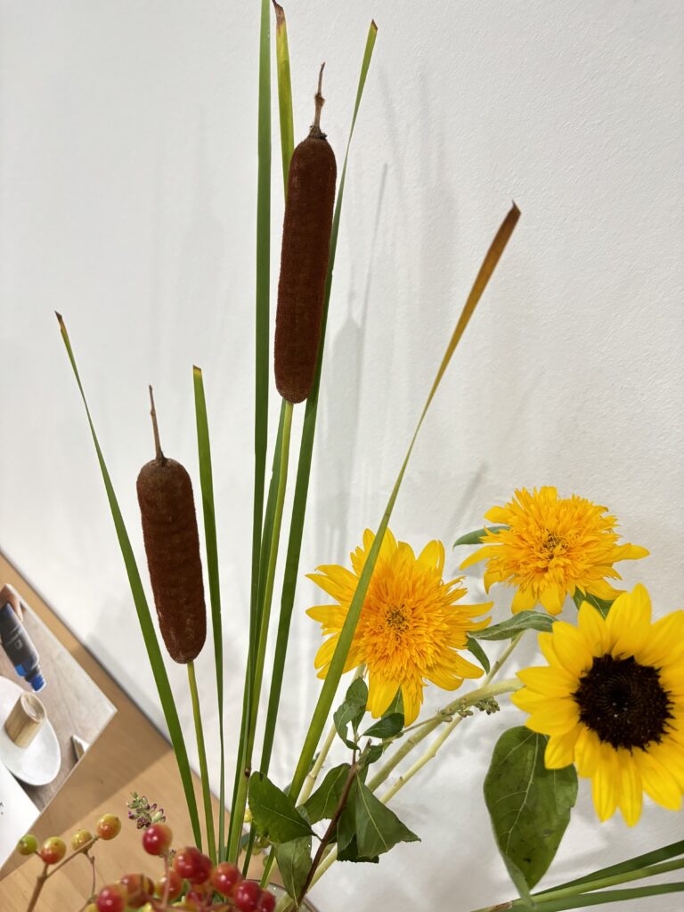 お花を生け終わると、スタッフもこのフランクフルトみたいなのなに?と興味を示してくれました。