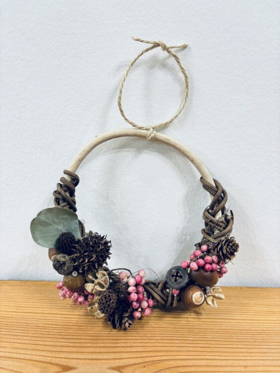 少しづつ拾って集めて、小さなリースを作ってみました。