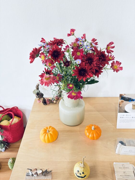 仕入に行ってもいまだヒマワリがあるというすごく不思議な感覚で、秋の花を待ち望んでいたら、