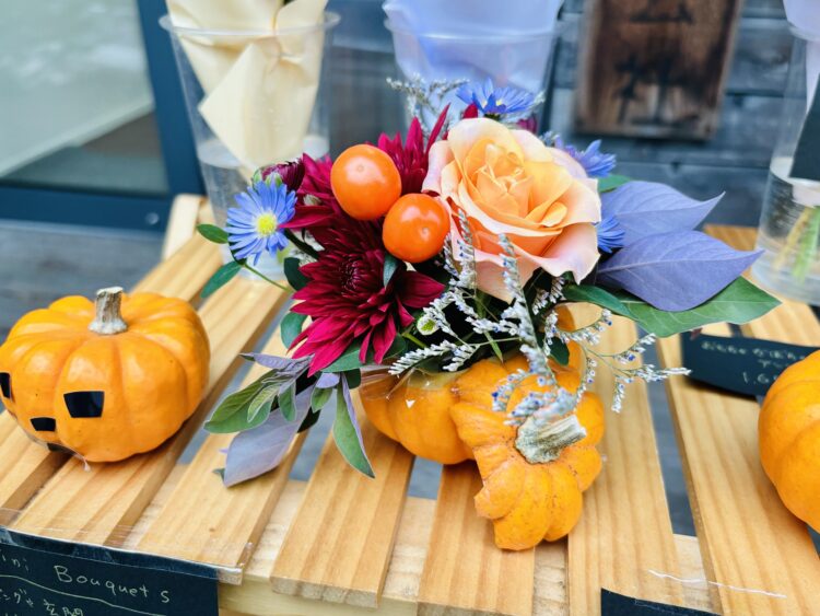 かぼちゃを器にしてミニアレンジを作成しました。
