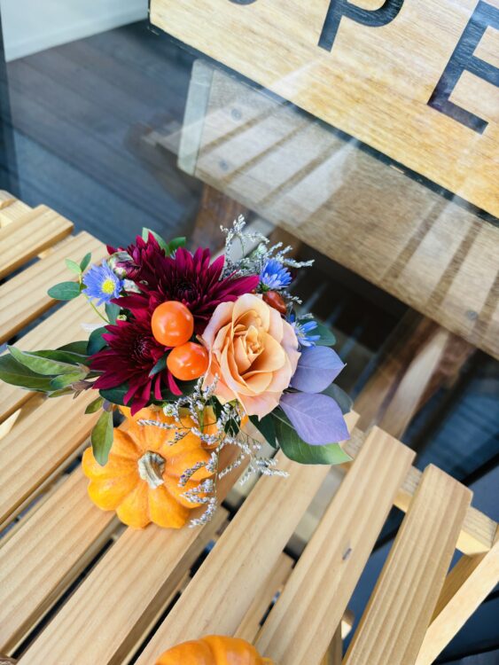 かぼちゃを器にしてミニアレンジを作成しました。