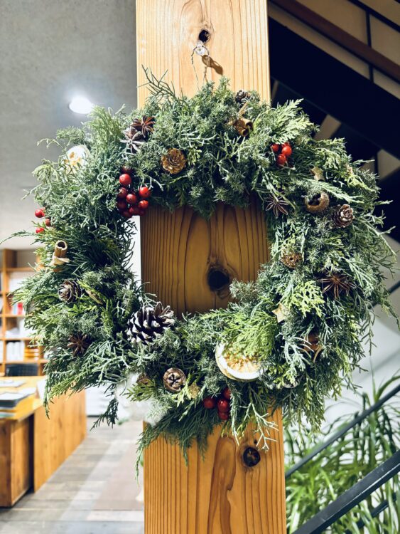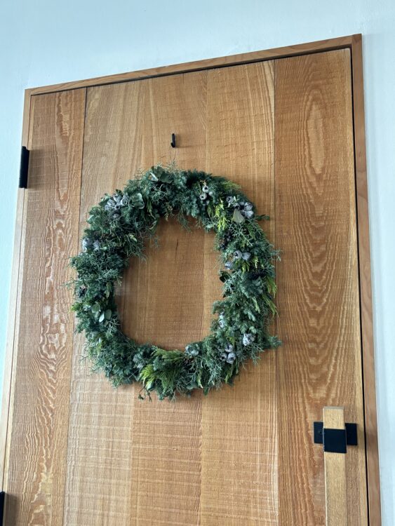 事務所入ってすぐのところに、ヒバやコニファー、ユーカリたちでフレッシュリースを。