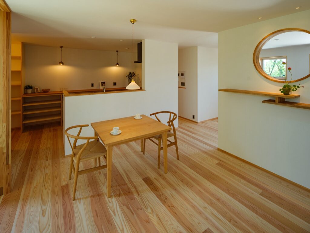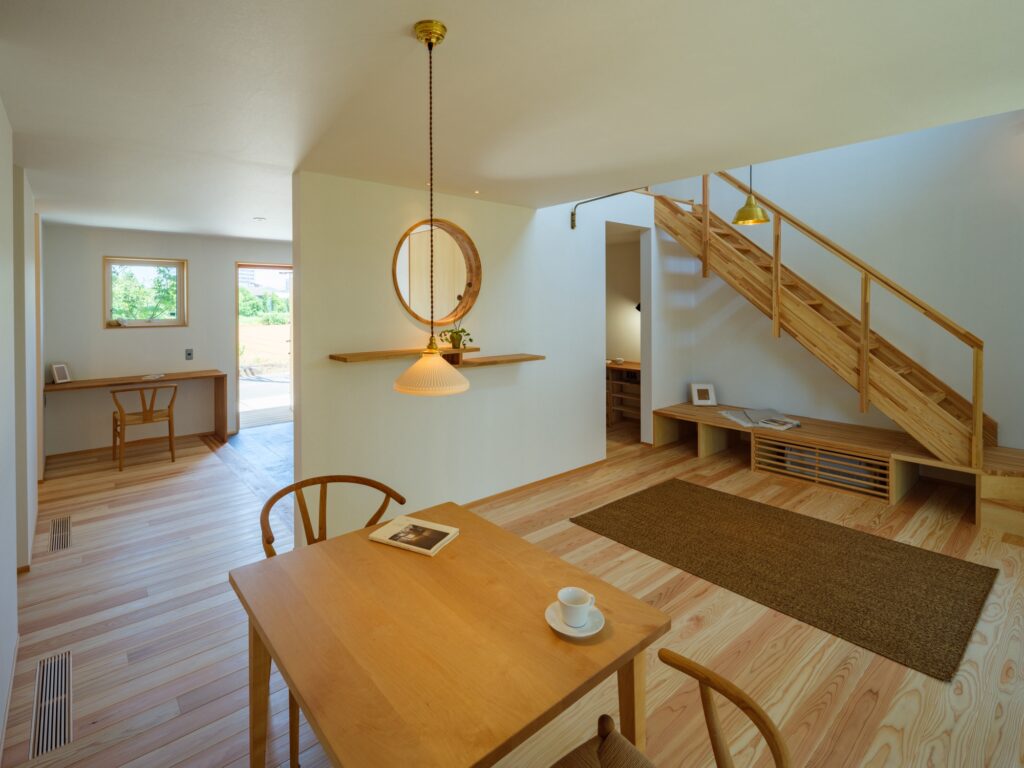 <Kizuki>では、限られた施工面積でも、視線の抜けや家具の高さ、間仕切りの工夫などを考慮して開放感のある家づくりを設計しています。