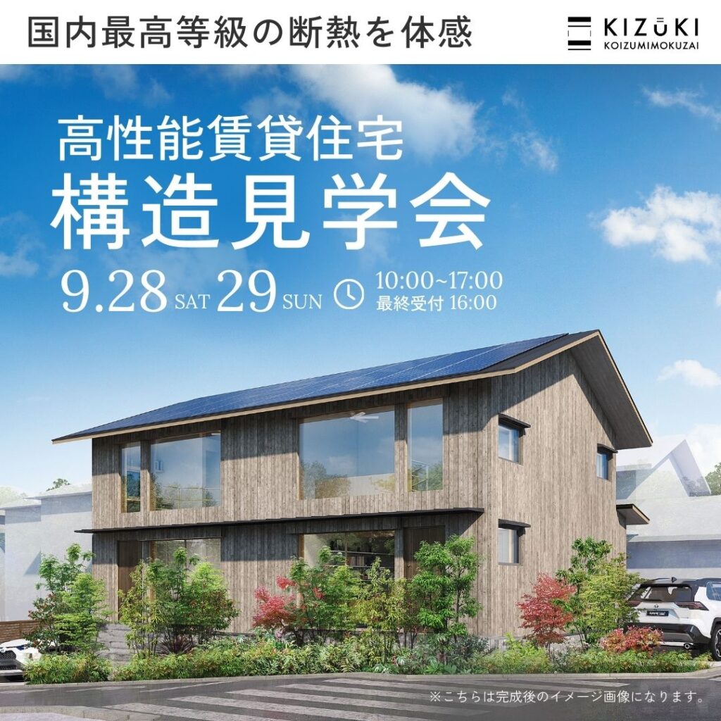 こんにちは、<Kizuki>の小泉です。今回は、9月28日(土)、29日(日)に開催する賃貸構造見学会についてご案内致します。