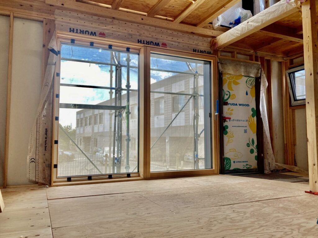 今回ご見学いただく物件は、断熱における<Kizuki>の標準仕様となります。そして、世界最高クラスの木製窓「佐藤の窓」をご覧いただく予定です。「佐藤の窓」は逃げる熱量を表す値(熱貫流率)が0.62【W/㎡K】という優れた性能を持ちながら、さらに木製窓であるという点が魅力です。世界最高級の木製窓を現場でご体験ください。