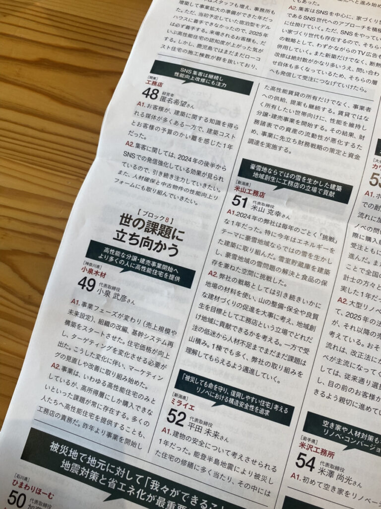 新健ハウジングvol.1021 「工務店の打ち手57」特集にインタビュー記事が掲載されました。