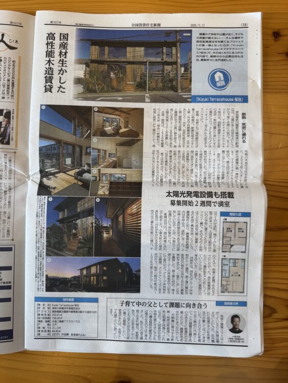 全国賃貸住宅新聞(11月17日発行)に掲載されました|Kizuki Terracehouse桜台