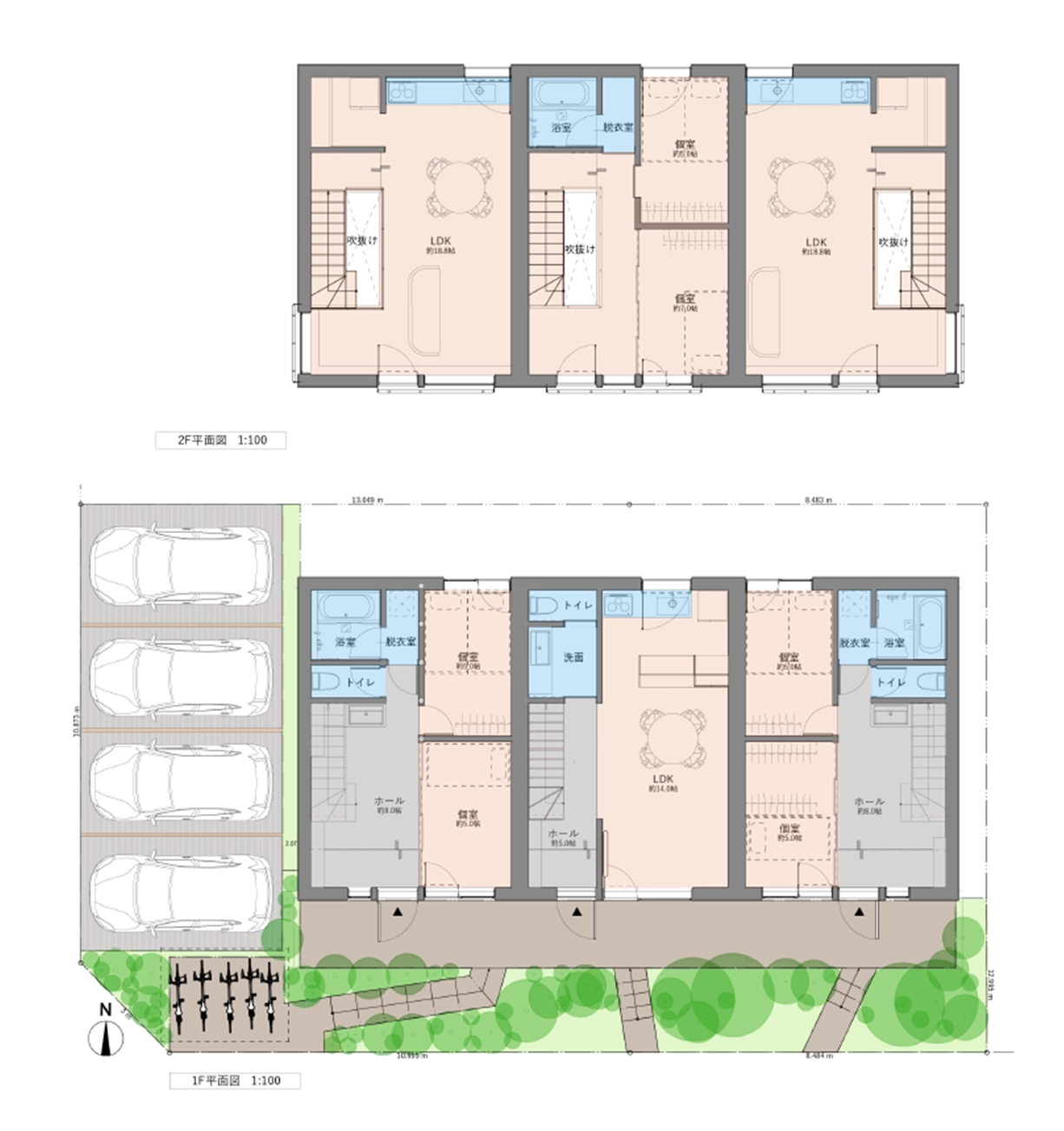 1階 据置型エアコン 2階 アメニティ型エアコン