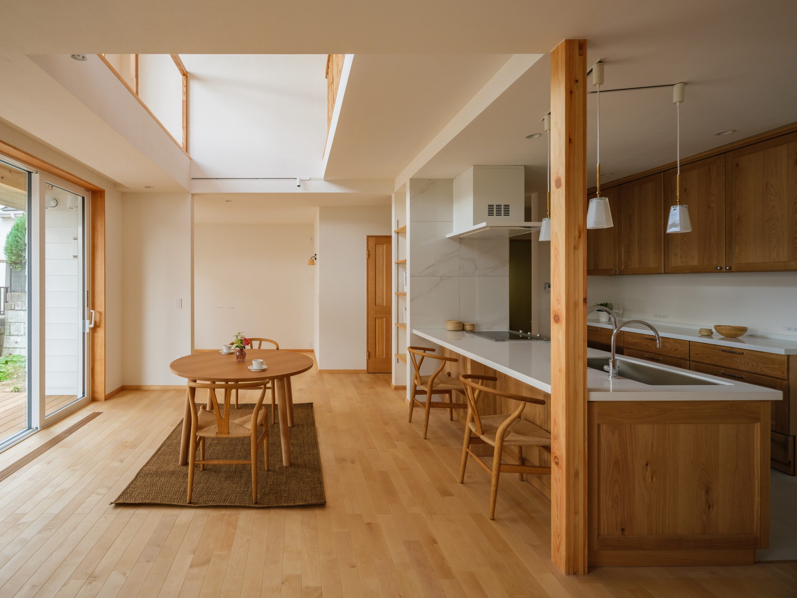 見学会に参加こともあり、家の性能面では、最初から<Kizuki>の皆さんに信頼してお任せすることができました。そうなると、いろいろ実現したいことが湧いてきます。私たちが家づくりをするのはこれが最初で最後と思っていましたから、小泉社長やスタッフの皆さんには本当にたくさんのこだわりをお願いしました。特に私たちがこだわったのは、キッチンからの眺めや、照明、作り付けの家具などでしたが、<Kizuki>の家づくりのすごさは、その全てを実現してくださったことです。それも、ただ単に実現するだけではなくて、収まりが美しい。