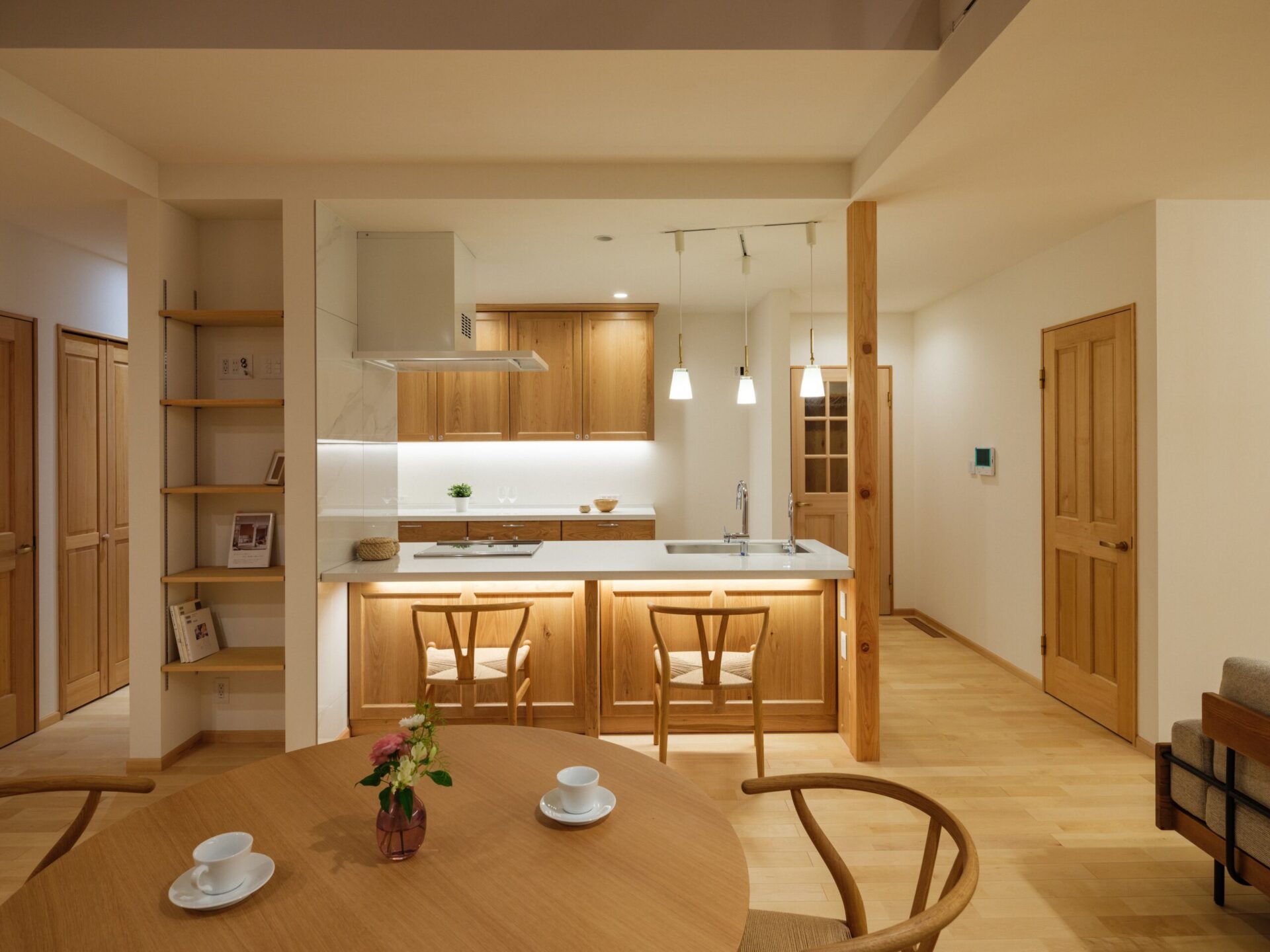 見学会に参加こともあり、家の性能面では、最初から<Kizuki>の皆さんに信頼してお任せすることができました。そうなると、いろいろ実現したいことが湧いてきます。私たちが家づくりをするのはこれが最初で最後と思っていましたから、小泉社長やスタッフの皆さんには本当にたくさんのこだわりをお願いしました。特に私たちがこだわったのは、キッチンからの眺めや、照明、作り付けの家具などでしたが、<Kizuki>の家づくりのすごさは、その全てを実現してくださったことです。それも、ただ単に実現するだけではなくて、収まりが美しい。