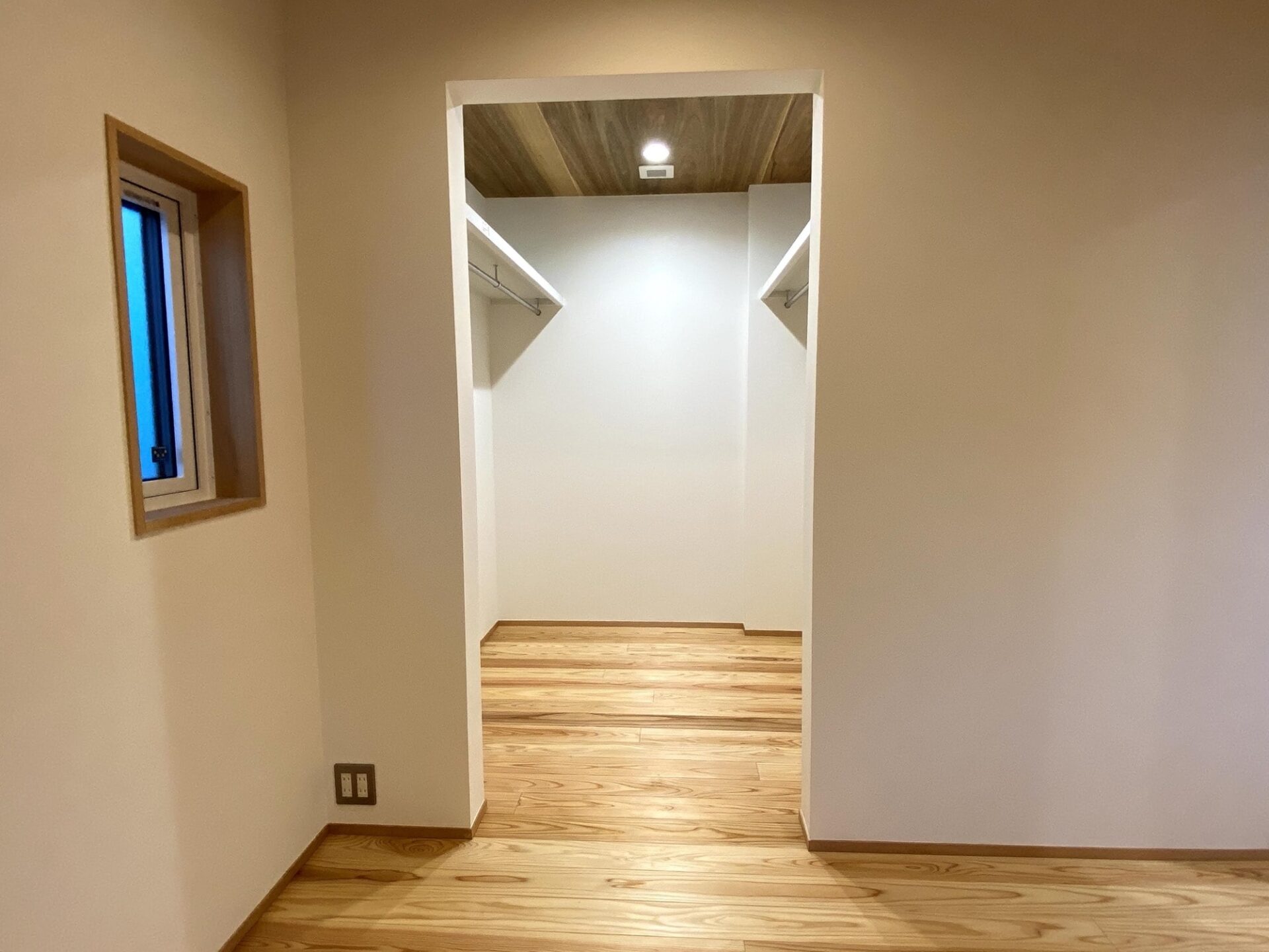 漆喰や無垢板といった自然素材を使用し、家具・洗面台・棚・カウンターなどは造作としました。