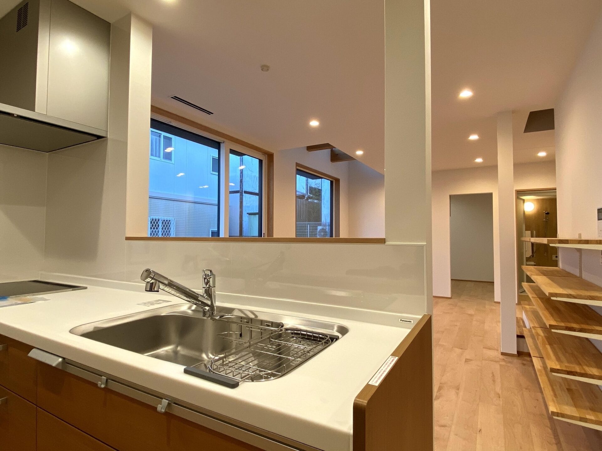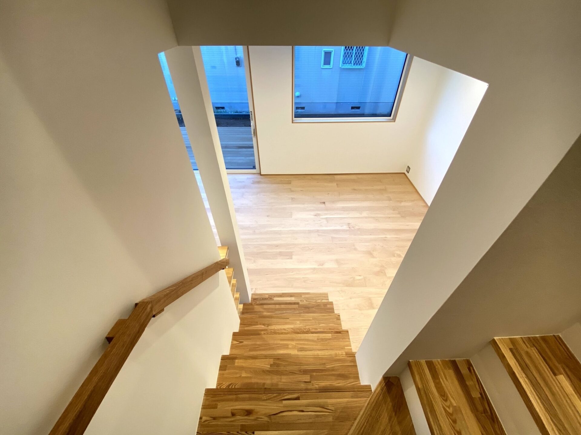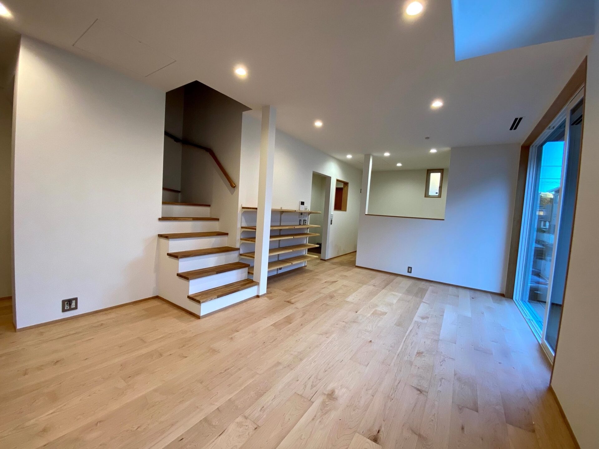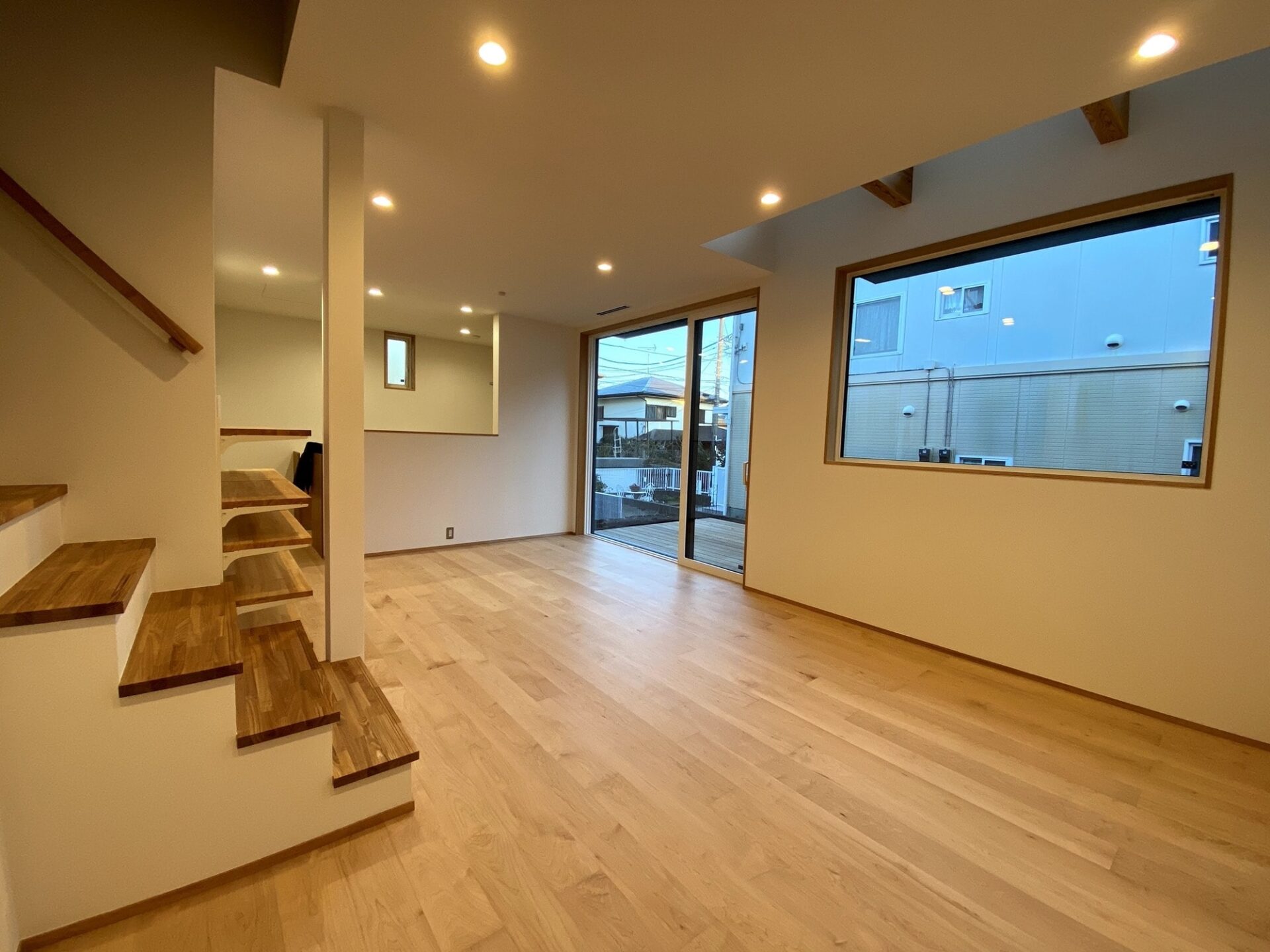 鎌倉市西部の閑静な住宅街でA様は家づくりを始めました。東西に長い敷地や近隣の住宅からの影を考慮しながら、1階のリビングにも日が差すように設計しました。