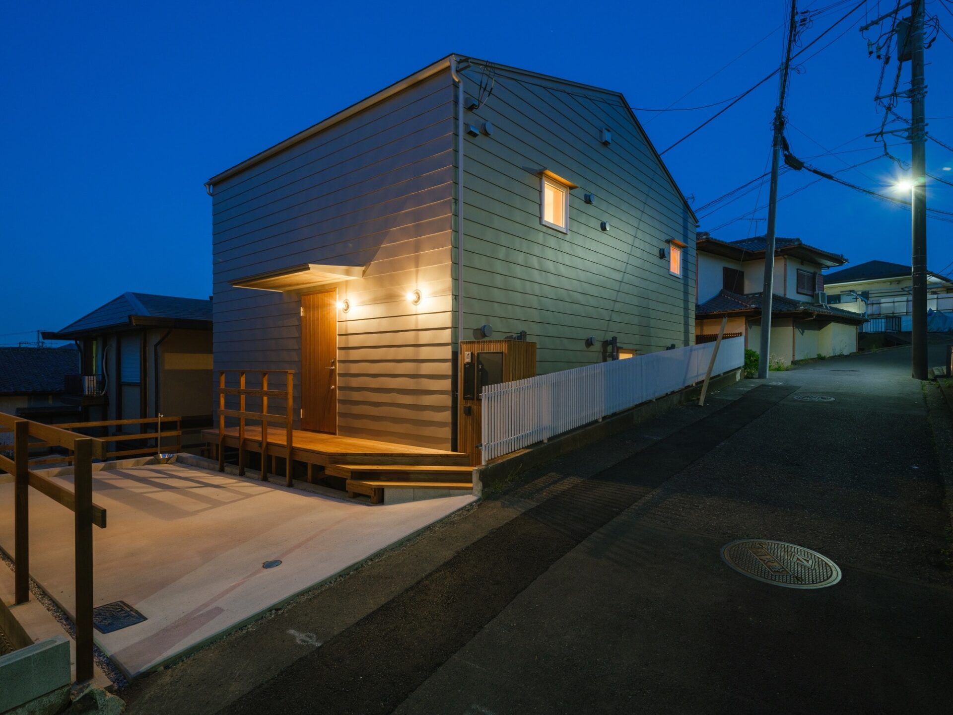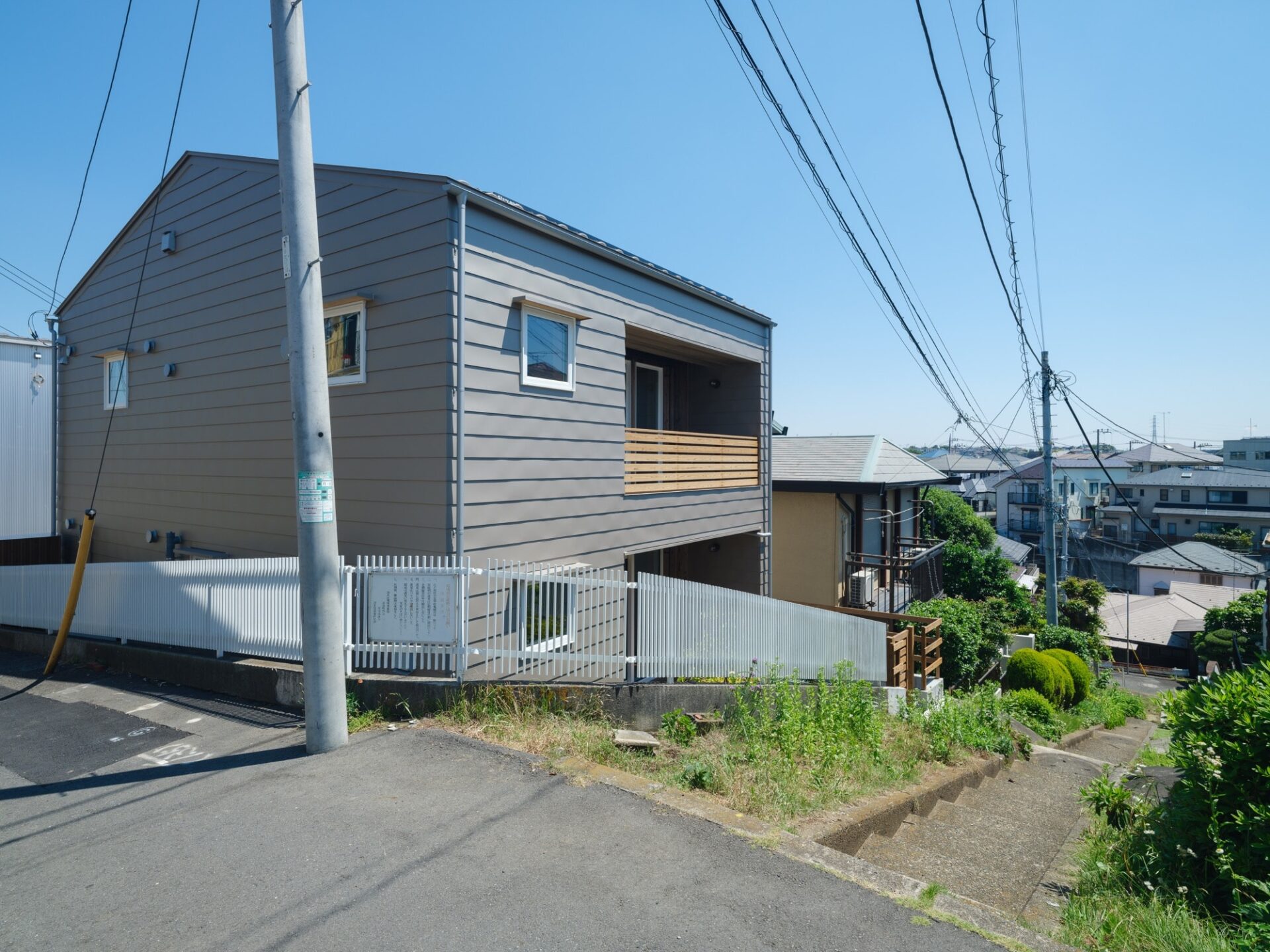 家づくりの舞台になった現場は、横浜市特有の丘陵地にあるご主人の実家がある場所で、前面道路が1階より約2m高くなっています。