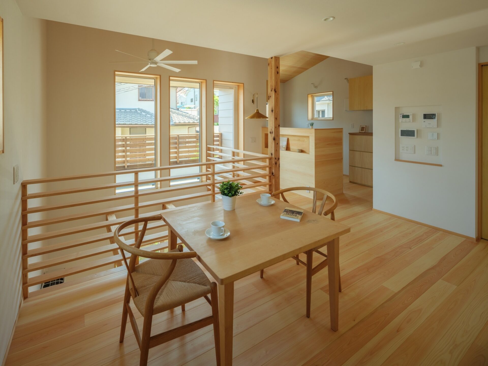 ご主人は幼少期の頃2階の自室から眺めた東側の景色が忘れられず、新居でこの景色をどう組み込んでいくのかがポイントでした。