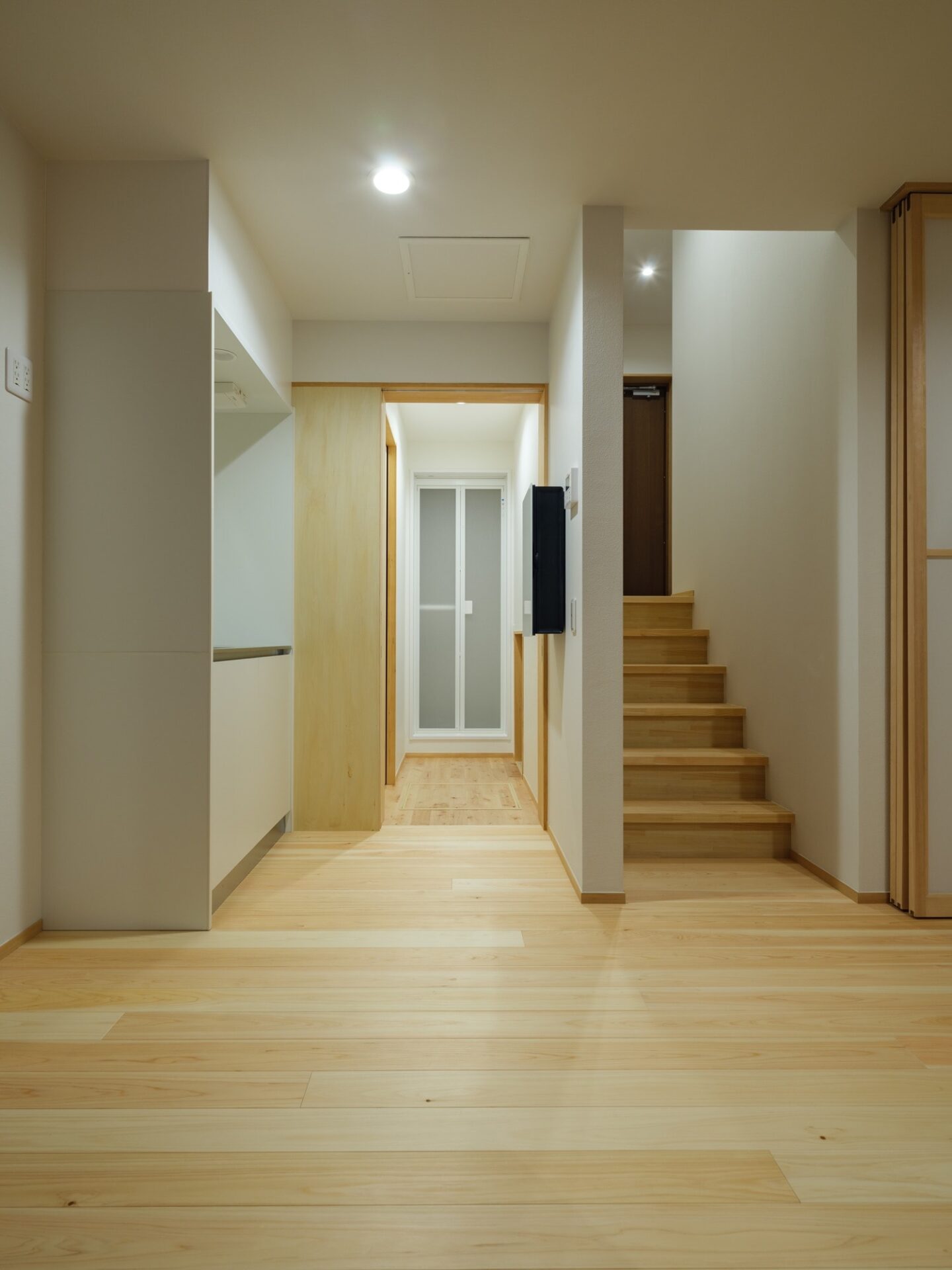 ご主人が新居でそば打ちを希望されていたため、1階はそば打ちを含む多目的なスペースとし、ご子息さまが相続する可能性も考慮した上で、可変性を持たせた間取りにしました。