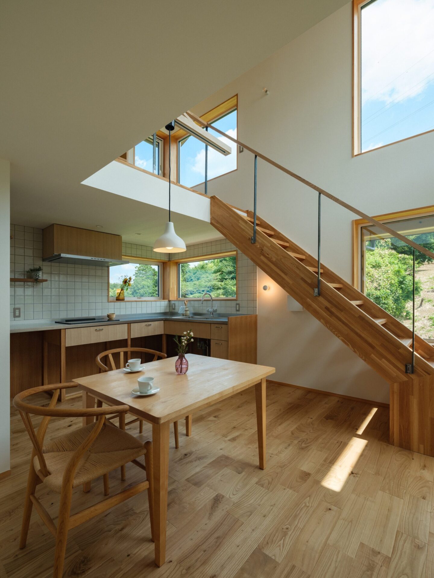 また、キッチンスペースだけでなく、室内のあらゆる場所で外の自然を感じられるよう、窓の配置を徹底的に計画しました。